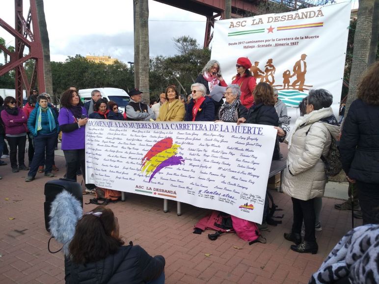 El pasado sábado 11 de febrero llegaron a nuestra ciudad las personas que emulan el recorrido que realizaron estos civiles en su huida de las tropas franquistas, llegaron a una ciudad que aquellos civiles represaliados no reconocerían. Personas, venidas de todos los rincones de España, entraron en Almería, una ciudad donde la simbología franquista aflora por multitud de fachadas y edificios públicos o privados, una ciudad cuyo gobierno municipal se ha negado sistemáticamente a cumplir con la Ley de Memoria Democrática y a retirar de nuestro callejero los homenajes a sádicos militares y asesinos fascistas de diversa índole.