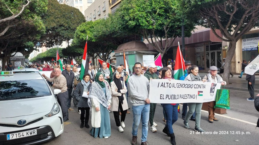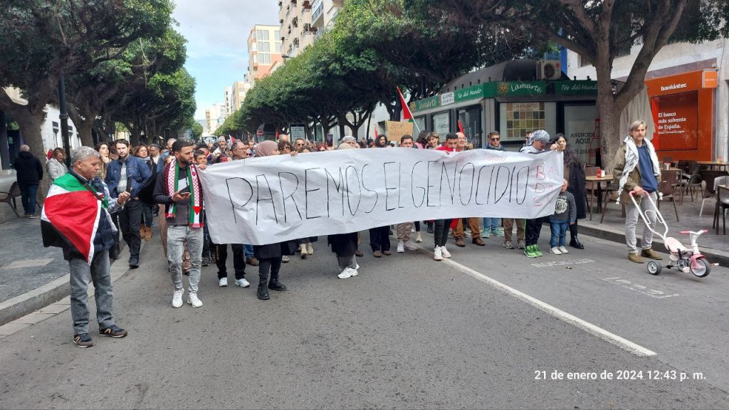 El portavoz de Podemos en la capital y concejal en el Ayuntamiento de Almería, Alejandro Lorenzo, manifestó que salían a la calle contra el genocidio que el “asesino de masas Netanyahu” estaba perpetrando en Palestina y pedía que España apoyase la denuncia que Sudáfrica había impulsado contra el Estado de Israel. Además Lorenzo cargó contra el gobierno de PSOE y Sumar y acusa a Pedro Sánchez y Yolanda Díaz de llevar a España a una guerra contra Yemen en defensa de Israel.