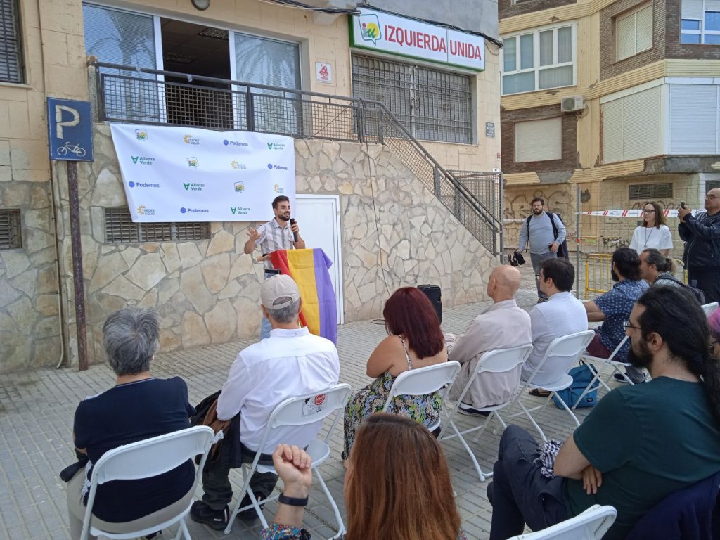 El candidato de la coalición Podemos, Izquierda Unida, Alianza Verde y Verdes Equo), Alejandro Lorenzo, destacó una defensa democrática del patrimonio histórico y cultural acabando con la simbología franquista en calles y edificios ya sean públicos o privados. De entre las principales propuestas de la coalición se destaca la creación de una concejalía de patrimonio desde la que se defienda un plan de gestión del mismo. En el turno de preguntas destacamos la postura sobre el Monumento a los Mártires de la Libertad situado en la Plaza Vieja de Almería. Al ser interpelado sobre el monumento Lorenzo expuso que lucharán para que el monumento se mantenga en su lugar independiente de si la sentencia judicial futura es o no favorable. «Los vecinos quieren que se quede en la Plaza Vieja y ahí se va a quedar».